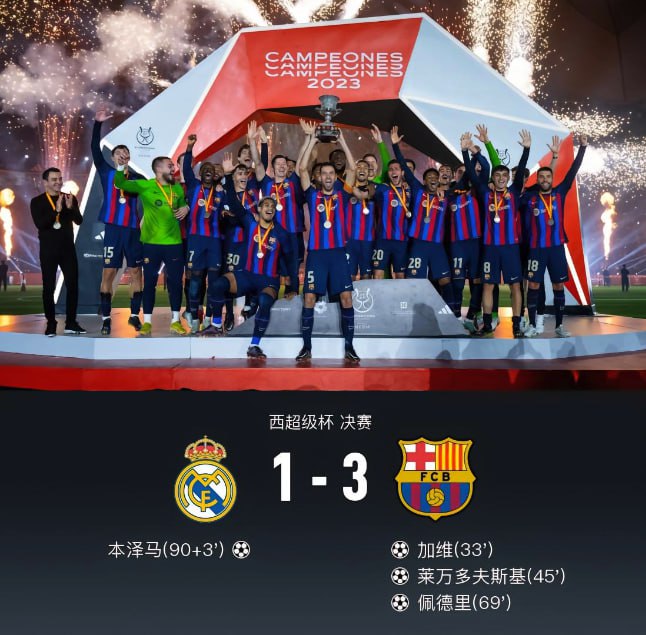 鍖椾含鏃堕棿1鏈16鏃03:00锛岃タ鐝鐗欒秴绾ф澂鍐宠禌鍦ㄦ矙鐗规硶璧寰峰浗鐜嬪浗闄呬綋鑲插満灞曞紑宸呭嘲瀵瑰喅锛岀殗瀹堕┈寰烽噷瀵归樀宸村炵綏閭o紝鏈鍦轰富瑁佸垽涓哄竷灏旀垐鏂銆備笂鍗婂満锛岃幈涓囧氬か鏂鍩轰笌鍔犵淮浜掗佷紶灏勩備笅鍗婂満锛岀櫥璐濊幈澶辫壇鏈猴紝浣╁痉閲岀牬闂ㄦ潃姝绘偓蹇碉紝鏈娉介┈璇荤掍袱杩炲嚮鎵冲洖涓鍩庛傛渶缁堬紝宸磋惃3-1鍔涘厠鐨囬┈锛屾崸寰楅槦鍙茬14搴цタ瓒呮澂锛